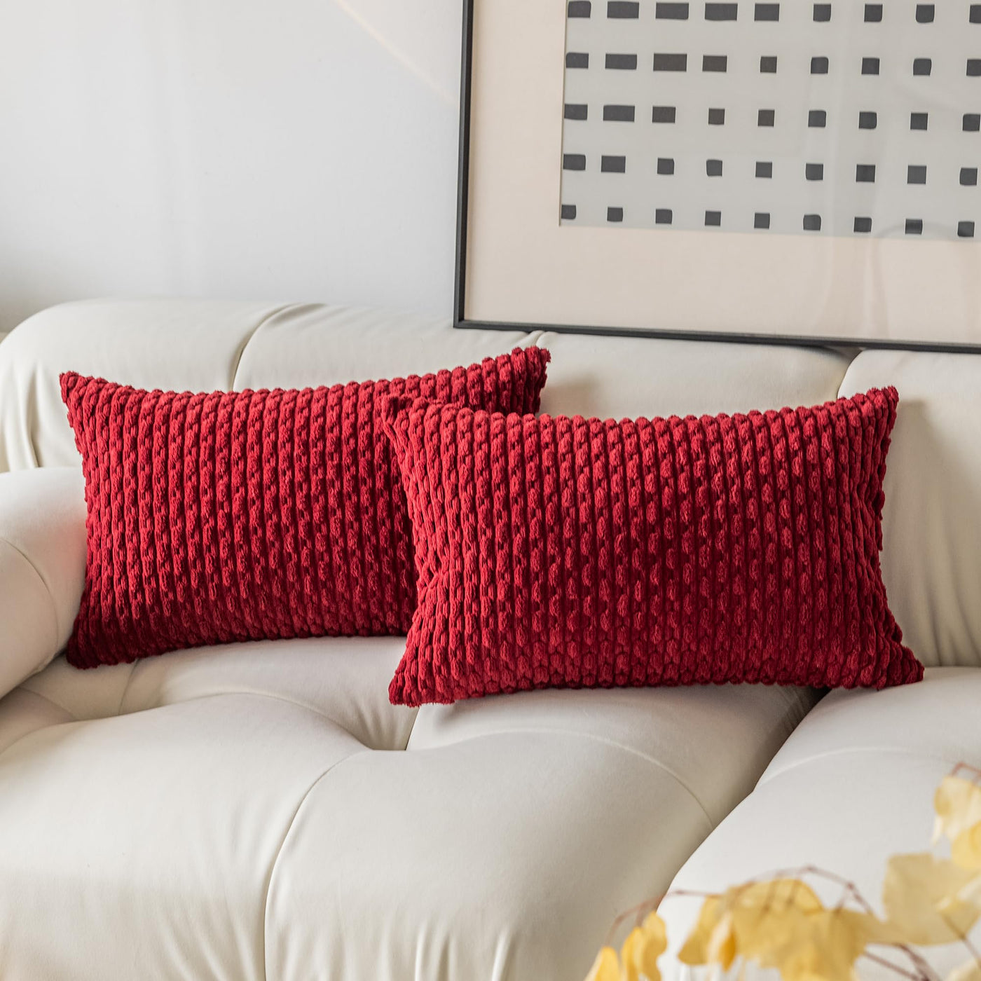 Kevin Textile Lumbar Throw Pillow Covers Ultra Soft Solid Striped Corduroy Rectangle Christmas Pillow Cover For Sofa 12 X 20 Inc