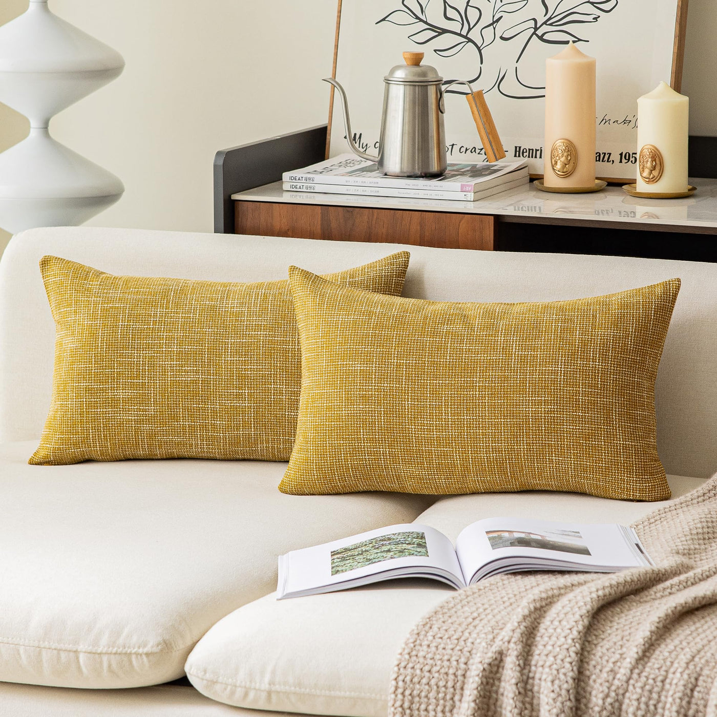 Kevin Textile New 2 Tone Star Faux Linen Pillowcase Decorative Cushion Covers For Bed/Sofa(12 X 20Inch, Honey Yellow) Set Of 2