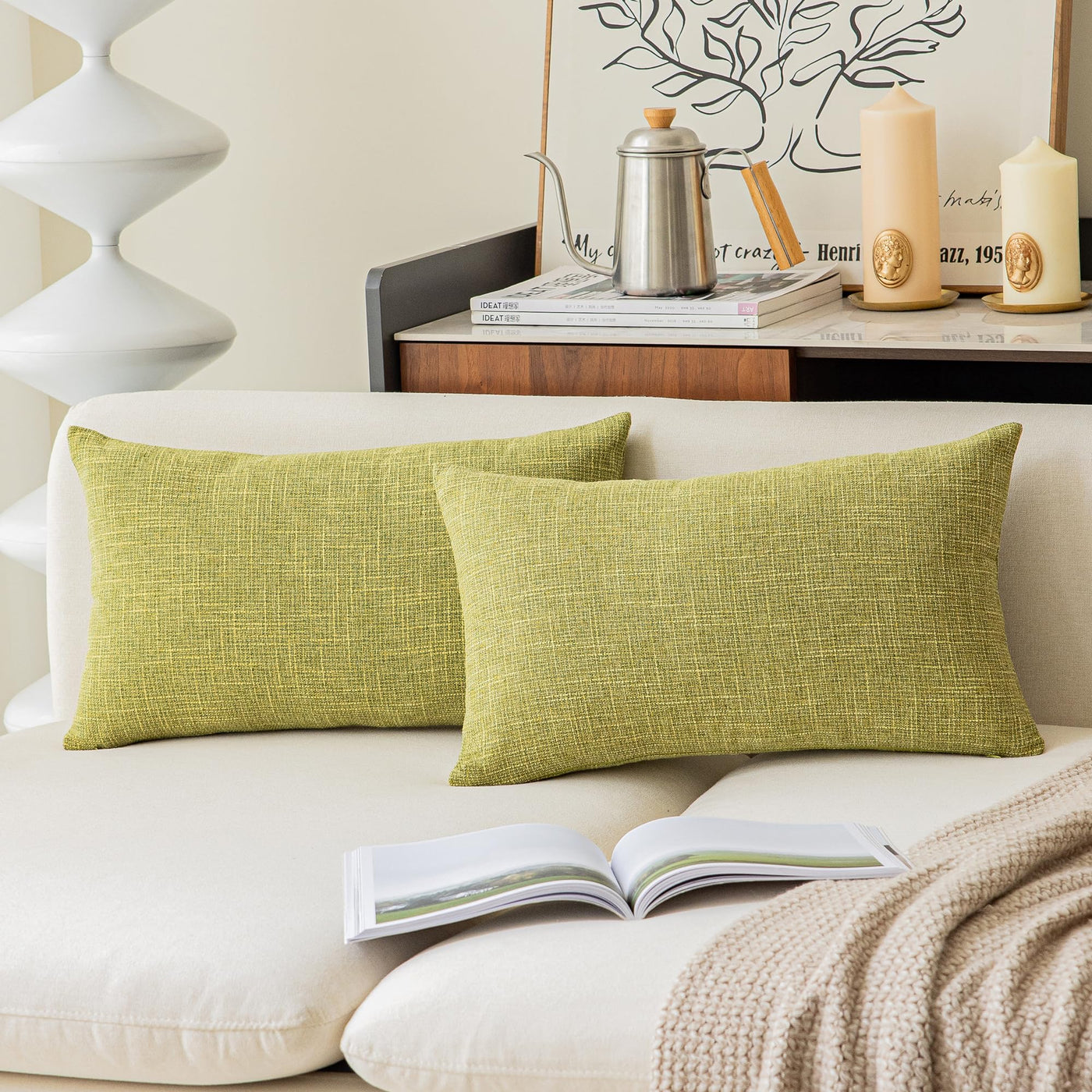 Kevin Textile Pack Of 2, Decorative 2 Tone Linen Pillow Covers Cushion Cover For Chair/Sofa/Bed/Car, 12 X 20 Inches,Linden Green
