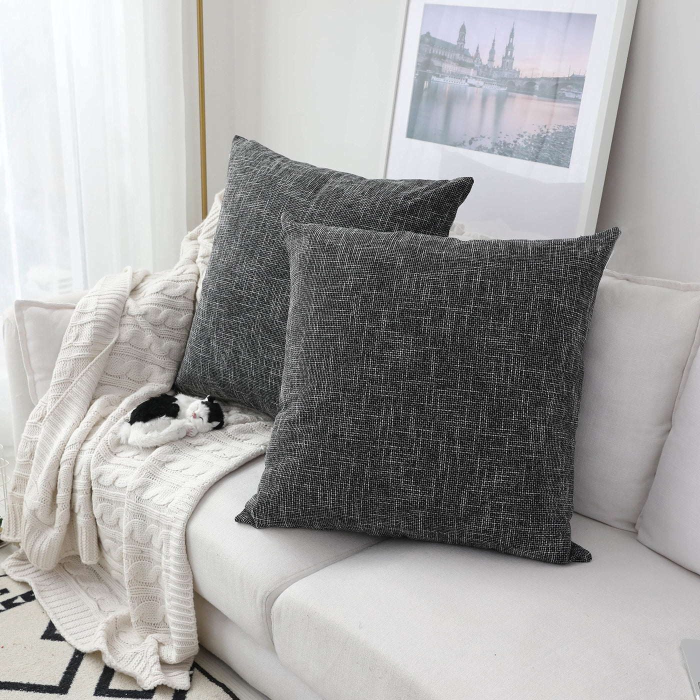 Kevin Textile Set Of 2 Decorative Pillows Covers For Couch Star Faux Linen Sofa Pillows Cover 24 X 24 Inch, 61X61Cm, Black
