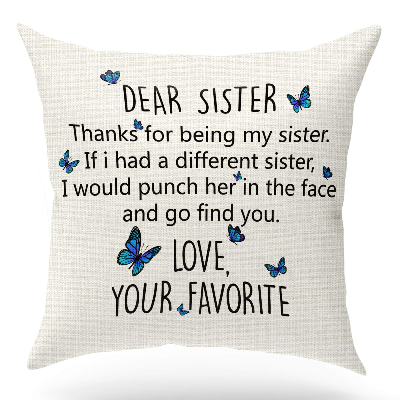 Kongmotree Funny Gifts For Sister,Birthday Gift For Sister,Dear Sister Thanks For Being My Sister, Linen Decoration Throw Pillow