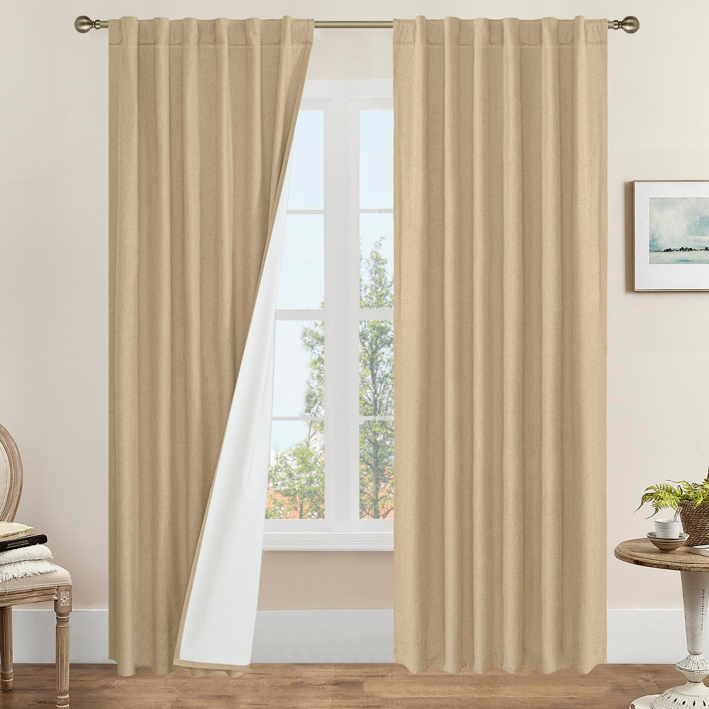 Lamit 100% Blackout Linen Curtains With Back Tab And Rod Pocketcombination Of Linen And White Liner Designthe Elegant Linen Fabric On The Front Enhances The Natural Beauty Of Your Room, While The White Lining On The Back Provides Complete Blackout And Privacy Protection.Privacy Protection:The Room Darkening Feature Ensures That No Light Enters Your Room, Making It Ideal For Daytime Sleepers, Shift Workers, Or Anyone Who Wants To Create A Cozy, Intimate Environment. The Curtains Also Block Outside Noise, Reducing Distractions And Promoting Better Sleep.Balance Room Temperature:The Full Blackout Linen Curtains Have Thermal Insulation Properties That Can Help Balance Your Room'S Temperature. During Winter, They Can Reduce Heat Loss And Keep Your Room Warm, Helping To Lower Your Energy Bills. In Summer, The Curtains Can Block Out The Sun'S Rays, Keeping Your Room Cool And Preventing Your Furniture From Fadingtips:The Lamit 100% Blackout Linen Curtains Come With Both Back Tabs And A Rod Pocket, Making Them Easy To Install And Versatile Enough To Fit Most Curtain Rods. With Their Combination Of Elegant Design, Blackout Capabilities, And Energy-Saving Properties, These Curtains Are A Practical And Stylish Choice For Any Room In Your Home.