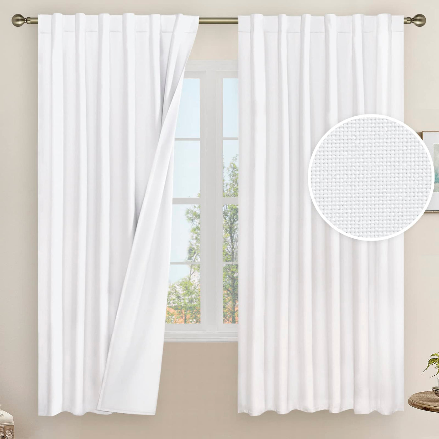 Lamit 100% White Blackout Curtains For Bedroom, 63 Inches Linen Textured Thermal Curtains Back Tab And Rod Pocket Burlap Panels