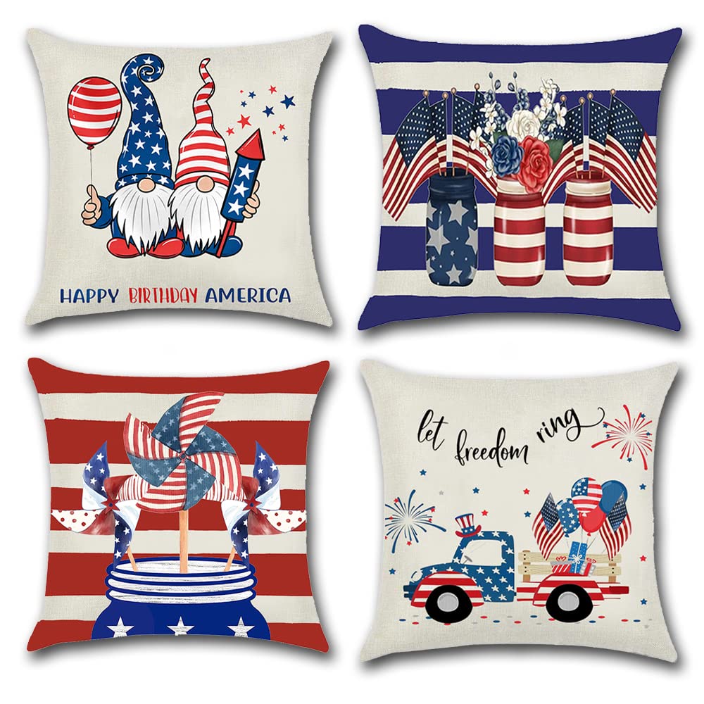 Layhut Coastal Throw Pillow Covers 18X18 Outdoor Beach Patio Pillow Case Soft Linen Nautical Cushion Covers For Sofa Couch Home