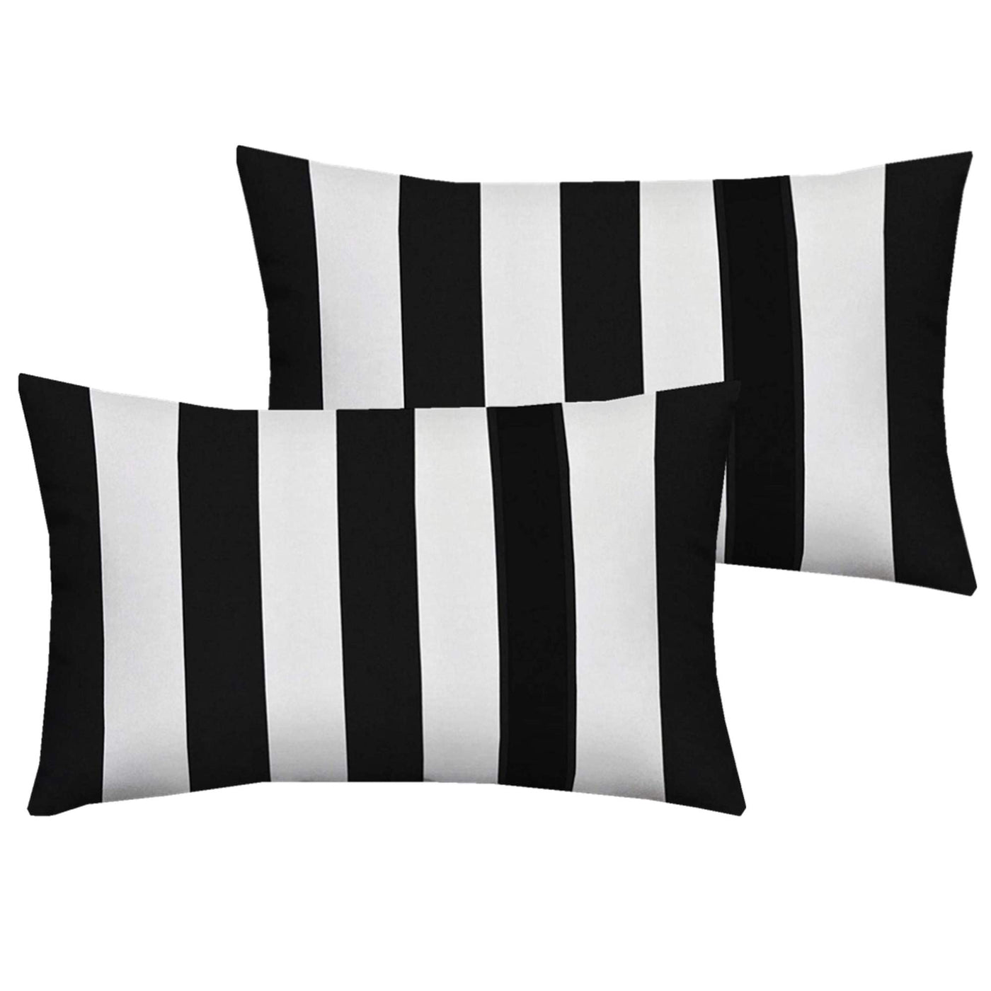 Leaveland White And Black Stripe Set Of 2 12X20 Inch Cotton Polyester Square Throw Pillow Case Decorative Durable Cushion Slipco