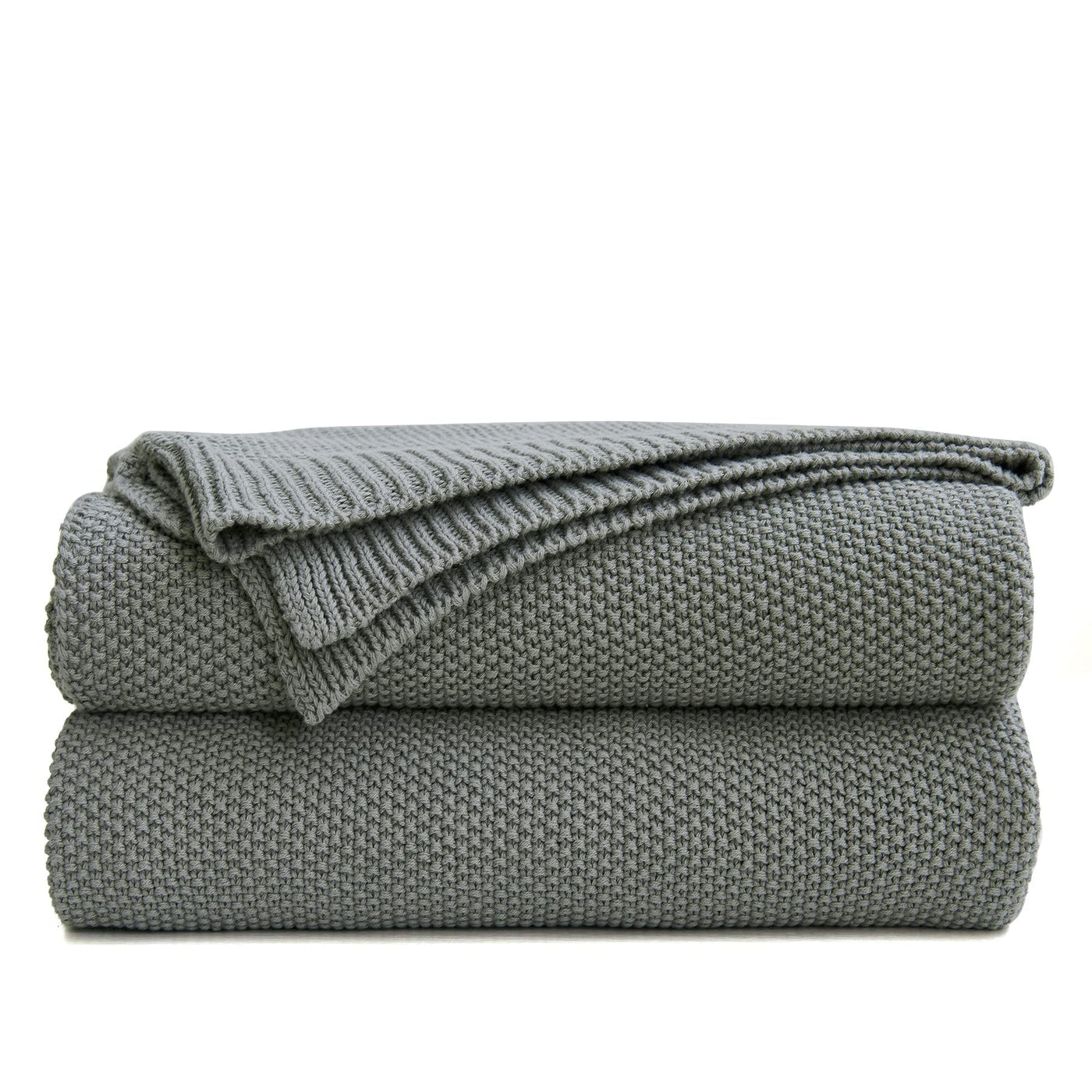 Longhui Bedding Medium Grey 100% Cotton Lightweight Cable Knit Throw Blanket For Couch Sofa Bed Home D
