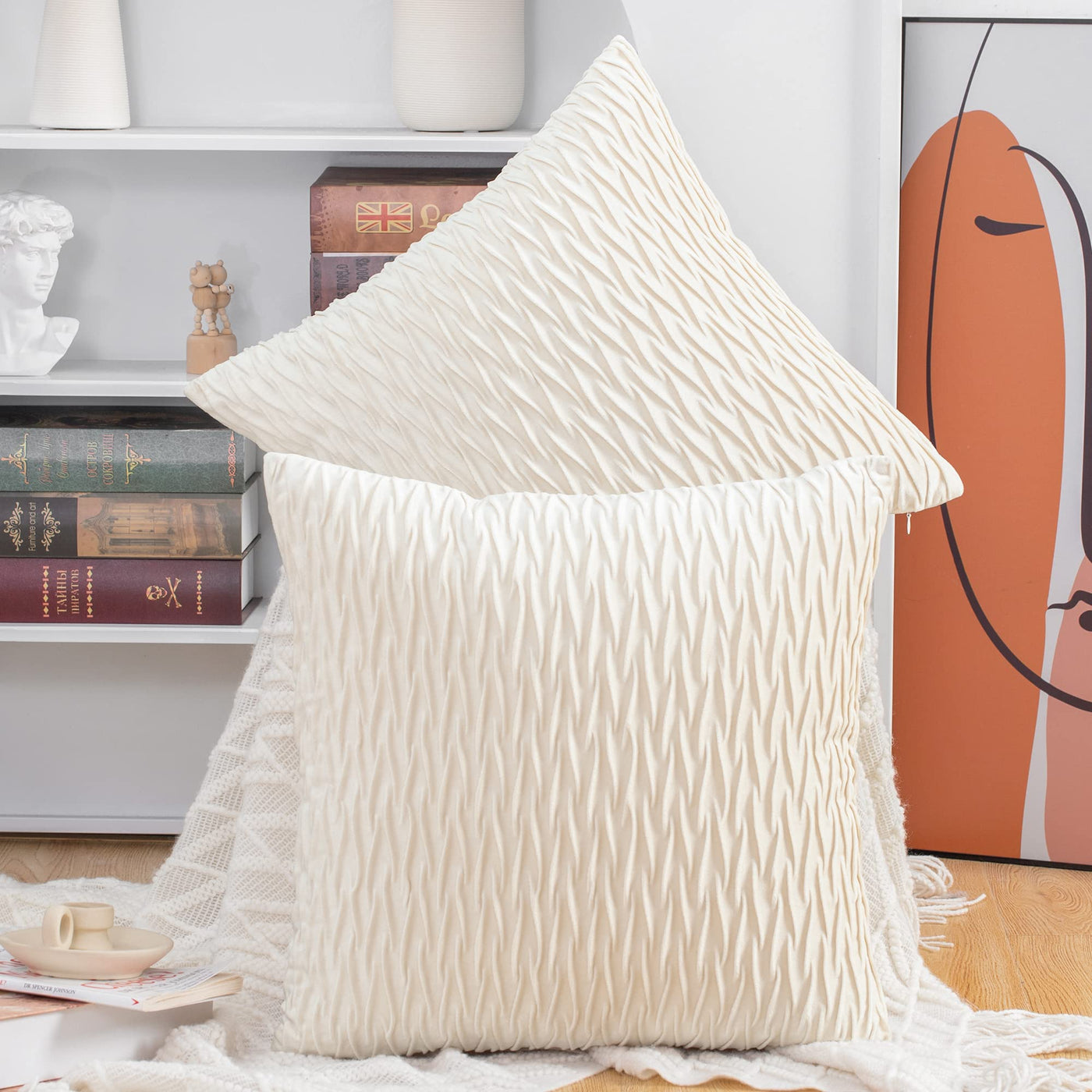 Madizz Set Of 2 Super Soft Velvet Decorative Throw Pillow Covers 12X12 Inch White Square With Texture Luxury Style Cushion Case