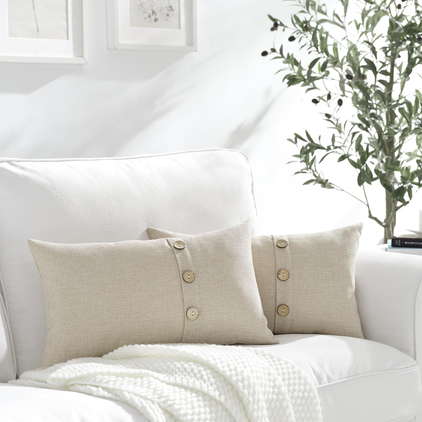 Meekio Set Of 2 Biscotti Beige Lumbar Pillow Covers 12 X 20 Farmhouse Linen Pillow Covers With Coconut Buttons For Sofa Couch Li