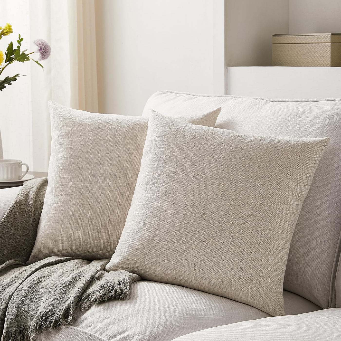 Meekio Set Of 2 Ivory Pillow Covers 22 X 22 Inch Farmhouse Boho Decorative Throw Pillow Covers Linen Cushion Covers For Sofa Cou