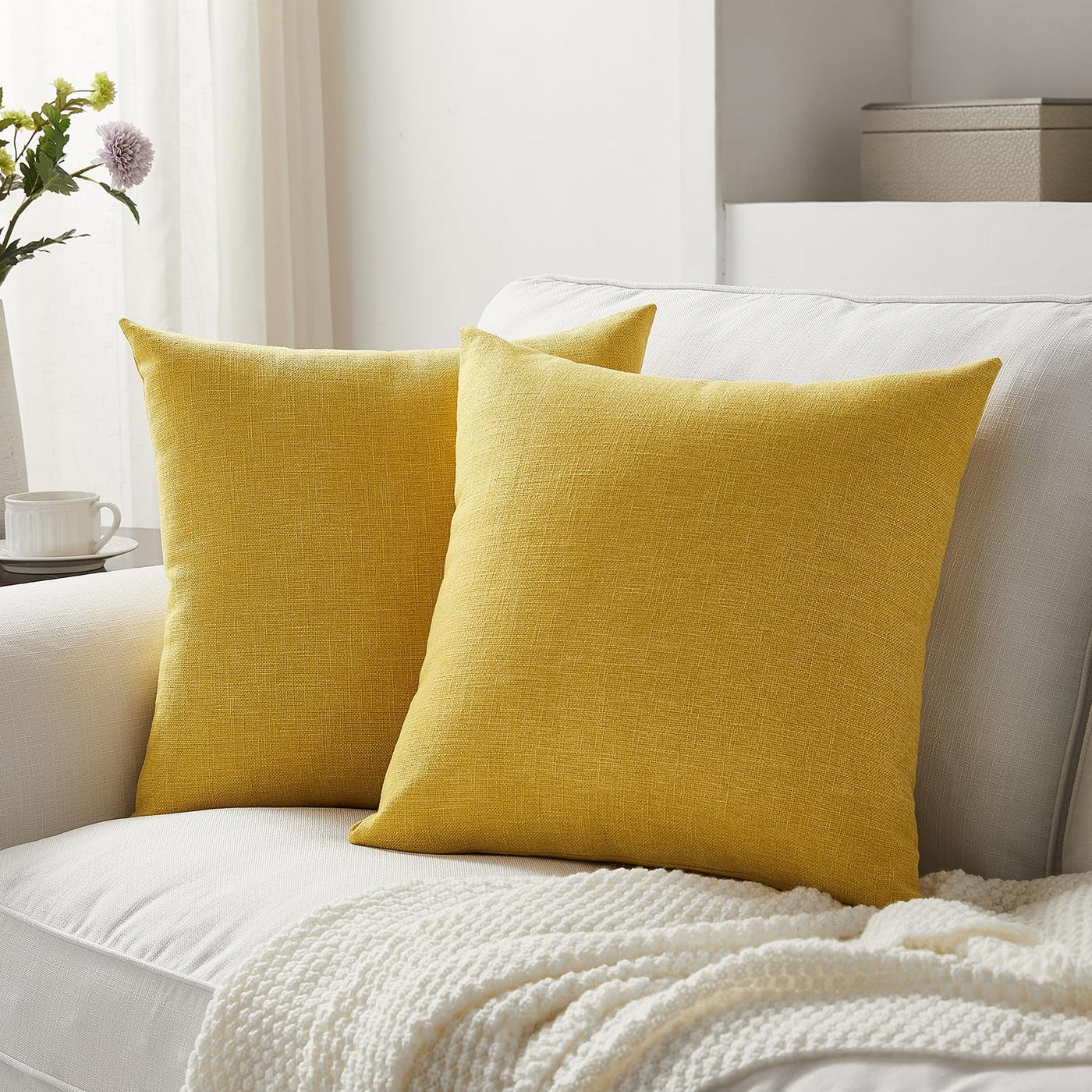 Meekio Set Of 2 Yellow Pillow Covers 16 X 16 Inch Decorative Throw Pillow Covers Linen Cushion Covers For Summer Decor