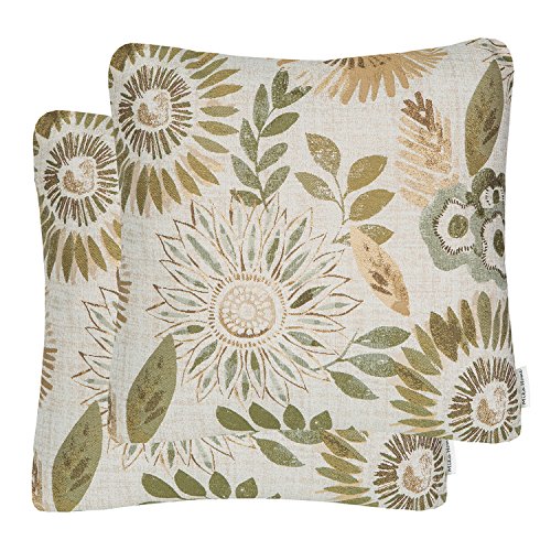 Mika Home Pack Of 2 Decorative Throw Pillows Cases Cushion Cover For Sofa Couch Bed,Sunflower Pattern,20X20 Inches,Green Cream