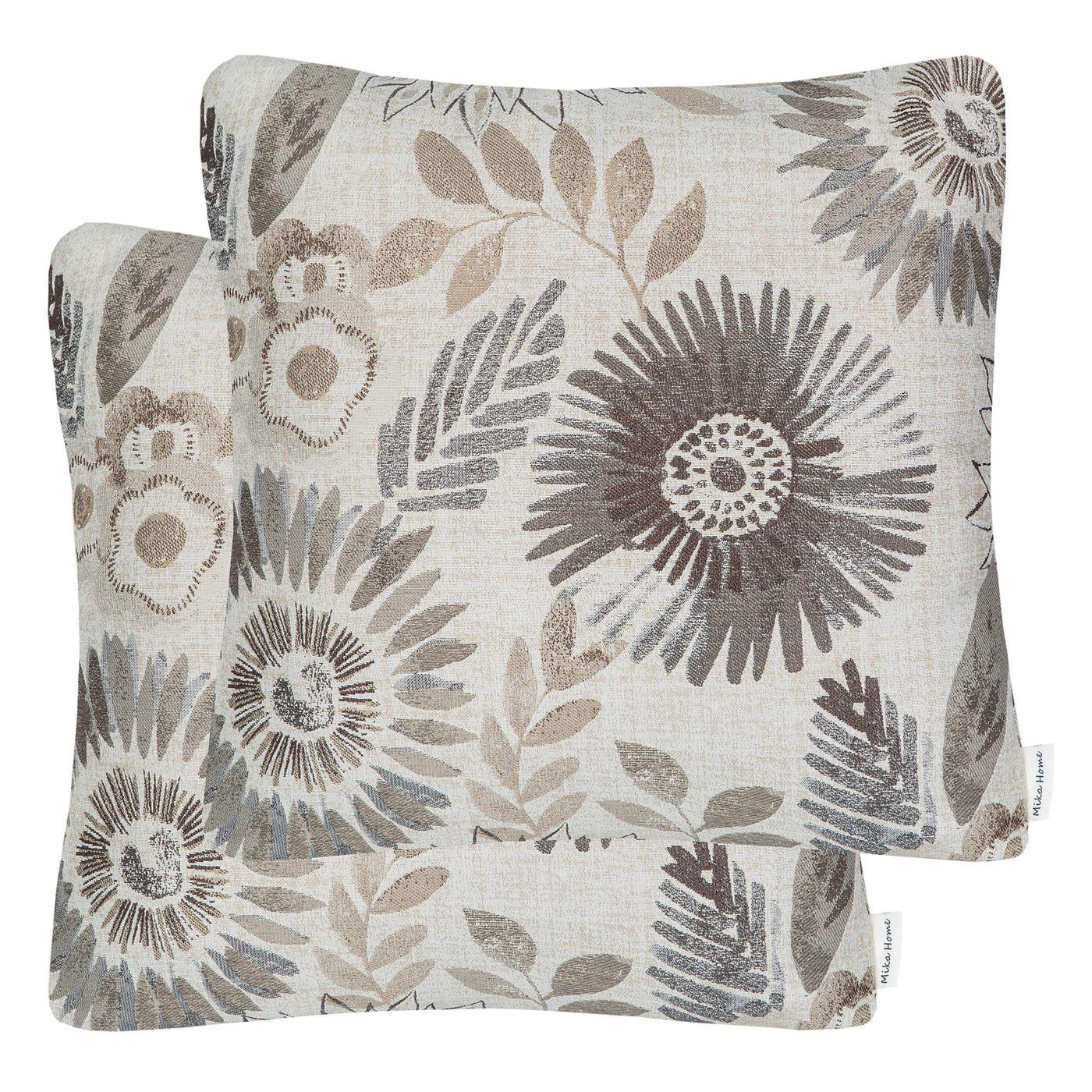 Mika Home Pack Of 2 Throw Pillow Covers Decorative Pillow Cases For Sofa Couch Bed,Sunflower Pattern,22X22 Inches,Grey Cream