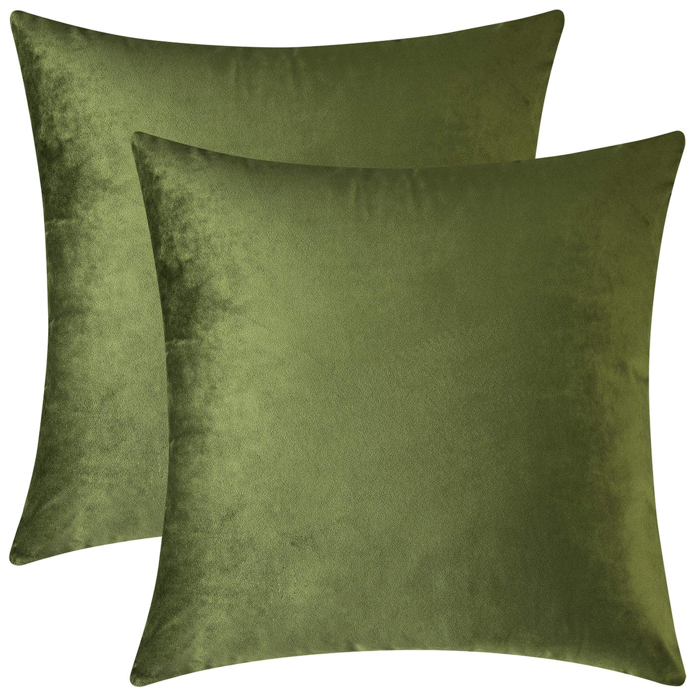 Mixhug Set Of 2 Cozy Velvet Square Decorative Throw Pillow Covers For Couch And Bed, Moss Green, 18 X 18 Inches