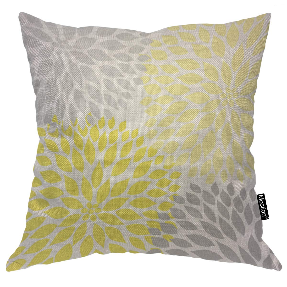 Moslion Throw Pillow Cover Dahlia Flowers 18X18 Inch Nature Fashion Petal Yellow Gray Square Pillow Case Cushion Cover For Home Car Decorative Cotton Linenstart With These Fun And Decorative Throw Pillow Covers, This Kind Of Pillow Cases Is Very Soft And Comfortable, Especially Very Durable And Environmentally Friendly, No Dye Substance Harming The Health Of You And Your Family. We Follow Current Trends And Bring You The Latest Fashion Pattern, So The Color And Image Is Very Stylish And Vivid. These Fashion Style And Pattern Can Match Well With Your Home, Bed, Sofa, Chair, Bedding, Couch, Seating And So On, It Will Make Your Home Bright And Refreshing. We Try Our Best To Make The Digital Images More Accurate, Because Of Manual Measurement, Please Allow 1-2 Cm Discrepancy. Please Note: This Is Only The Pillow Cover, Sold Without The Insert.