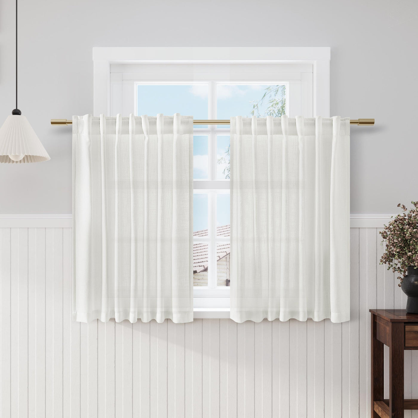 Nanspring Off White Cafe Curtains 48 Inch Length Set 2 Panel Back Tab Pocket Semi Sheer Short Linen White Curtain Tiers For Smal