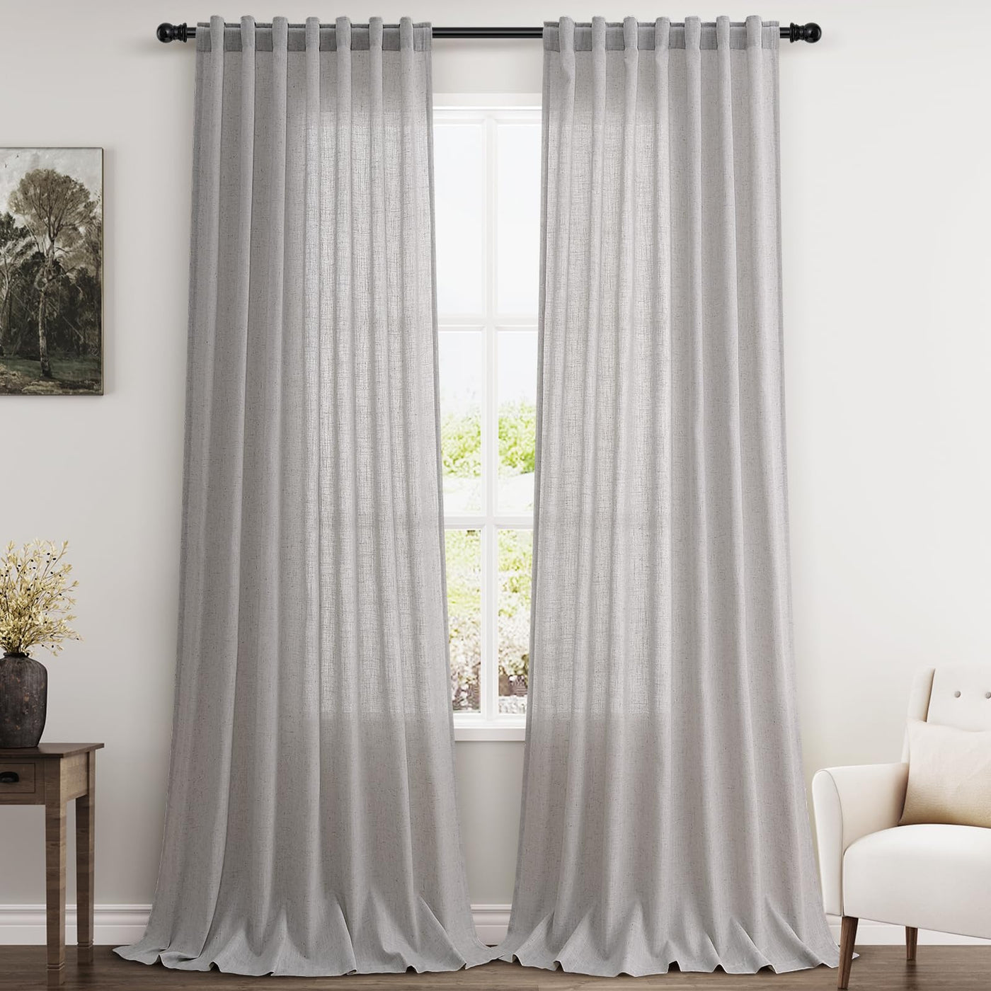 Nanspring Silver Birch Back Tab Linen Curtains For Living Room 2 Panels Set Semi Sheer Curtains For Dining Room 52X90