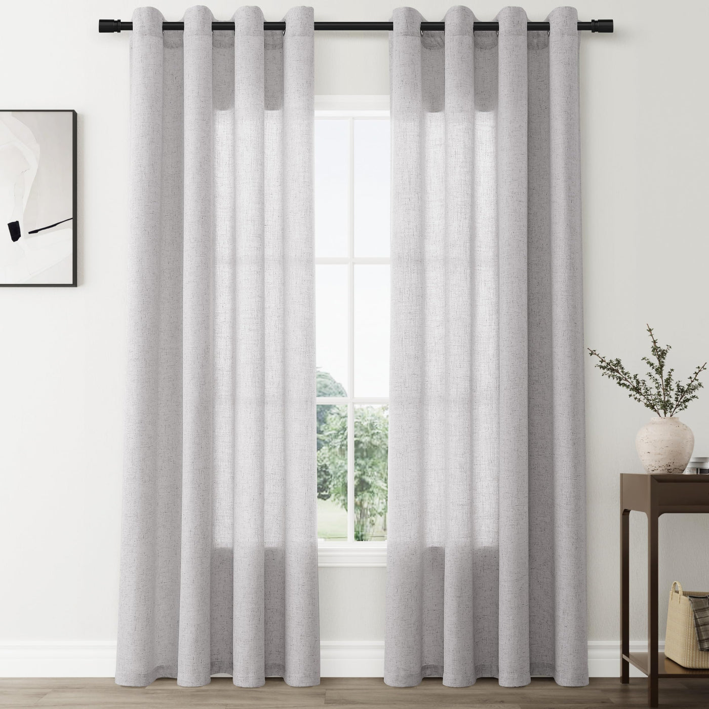 Nanspring Silver Living Room Curtains 84 Inch Length 2 Panels Linen Blend Grommet Semi Sheer Light Filtering Country Farmhouse C