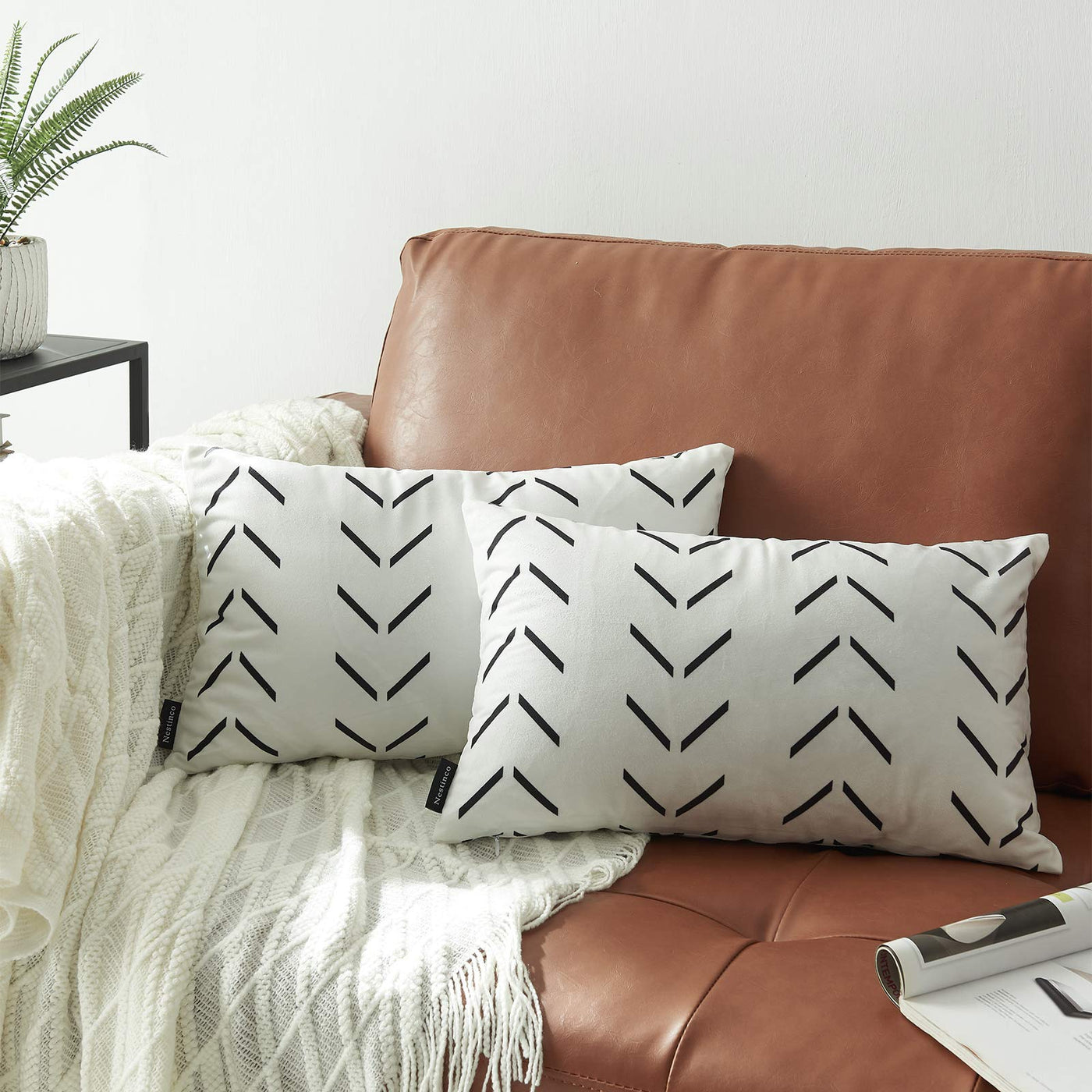 Nestinco Set Of 2 White Lumbar Pillow Covers 12 X 20 Inches Boho Aztec Polyester Blend Decorative Throw Pillow Covers For Sofa C