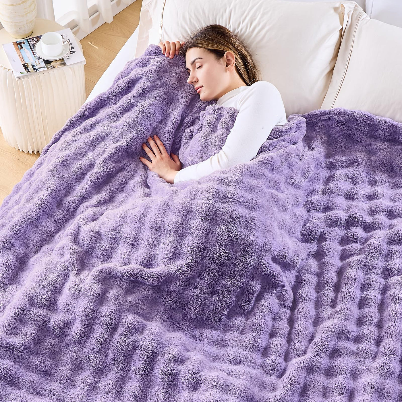Newcosplay King Blanket For Couch Lavender Super Soft Flannel Fleece 3D Bubble Lightweight Bed Blanket All Season Use (Lavender,