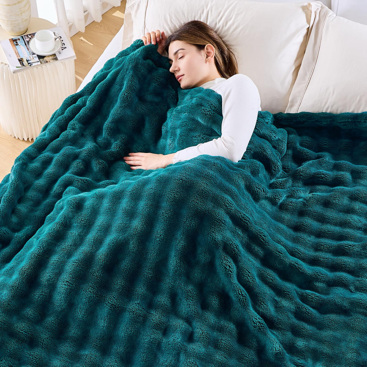 Newcosplay Queen Blanket For Couch Dark Teal Super Soft Flannel Fleece 3D Bubble Lightweight Bed Blanket All Season Use (Dark Te
