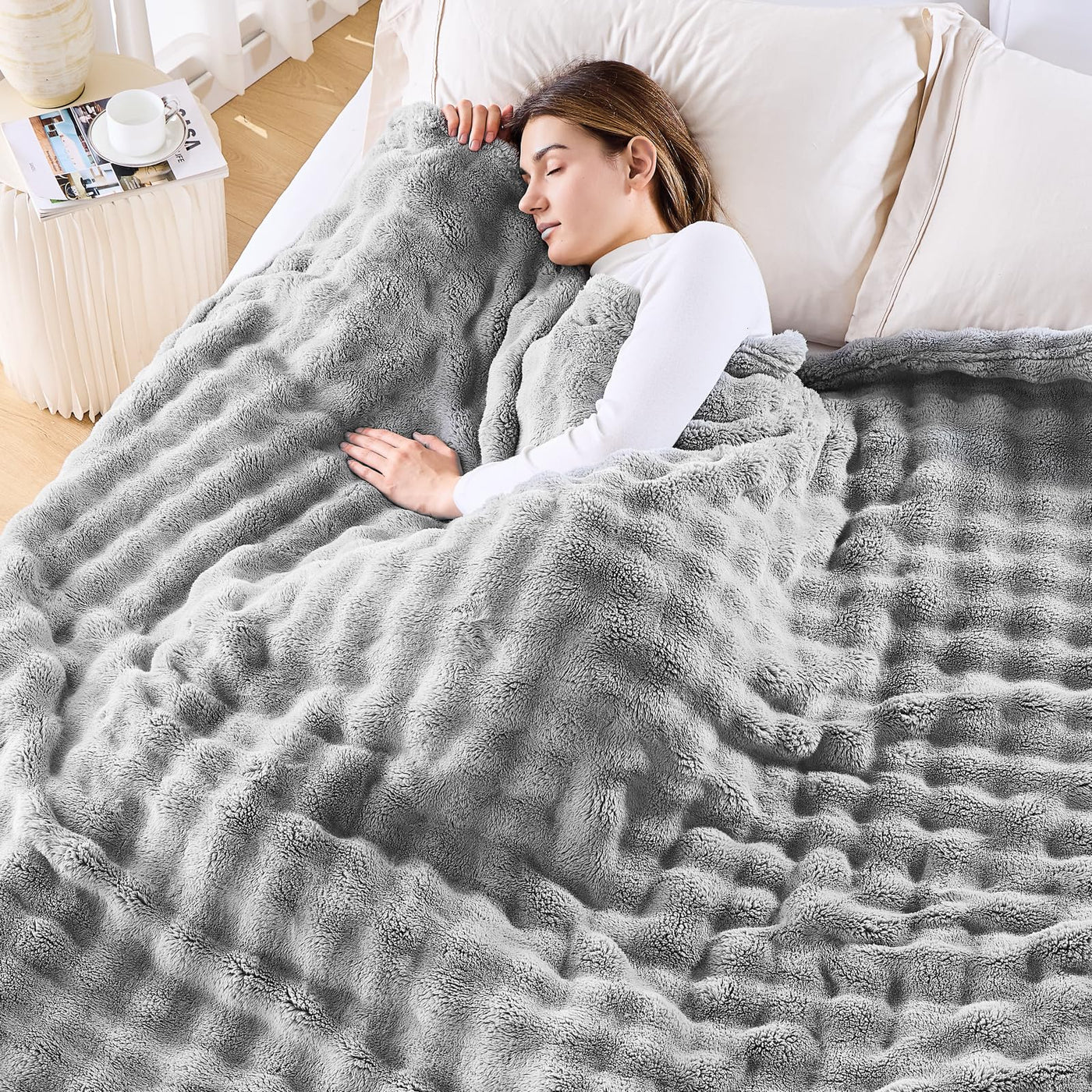 Newcosplay Queen Blanket For Couch Grey Super Soft Flannel Fleece 3D Bubble Lightweight Bed Blanket All Season Use (Grey, Queen(