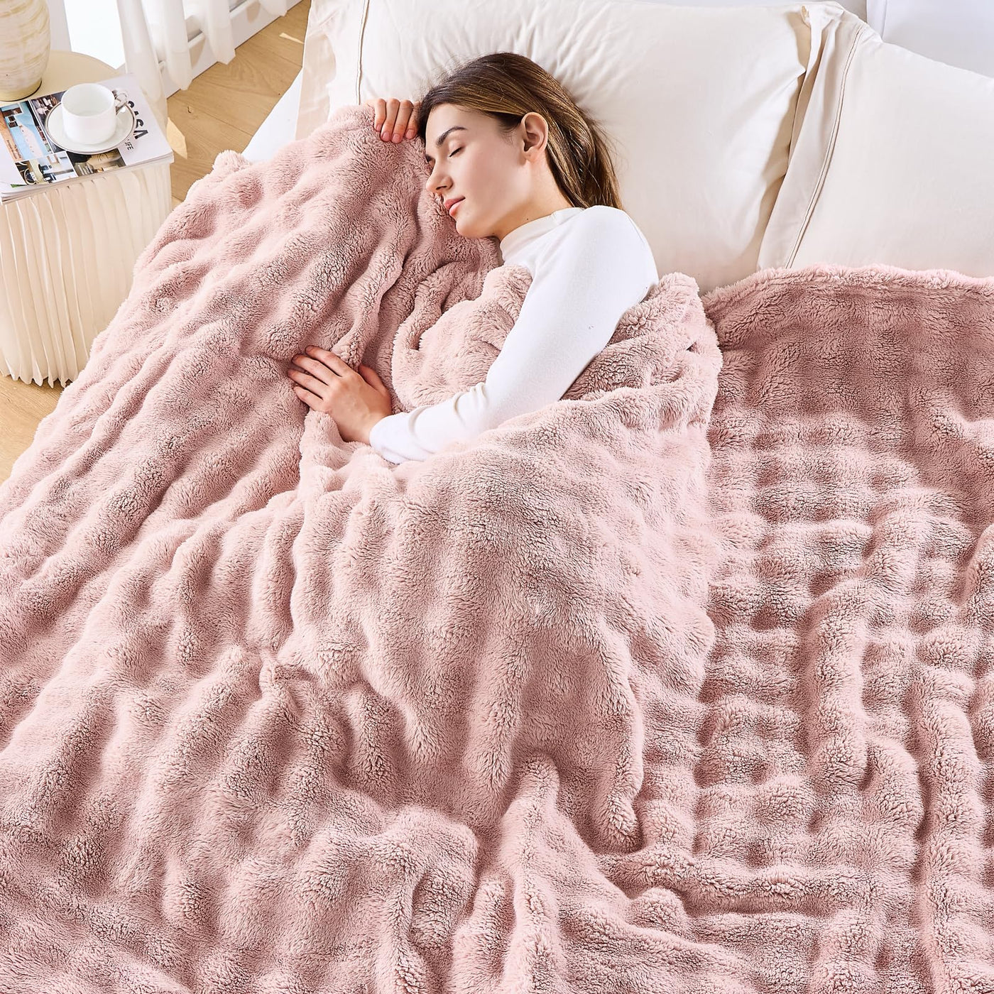 Newcosplay Queen Blanket For Couch Pink Super Soft Flannel Fleece 3D Bubble Lightweight Bed Blanket All Season Use (Pink, Queen(