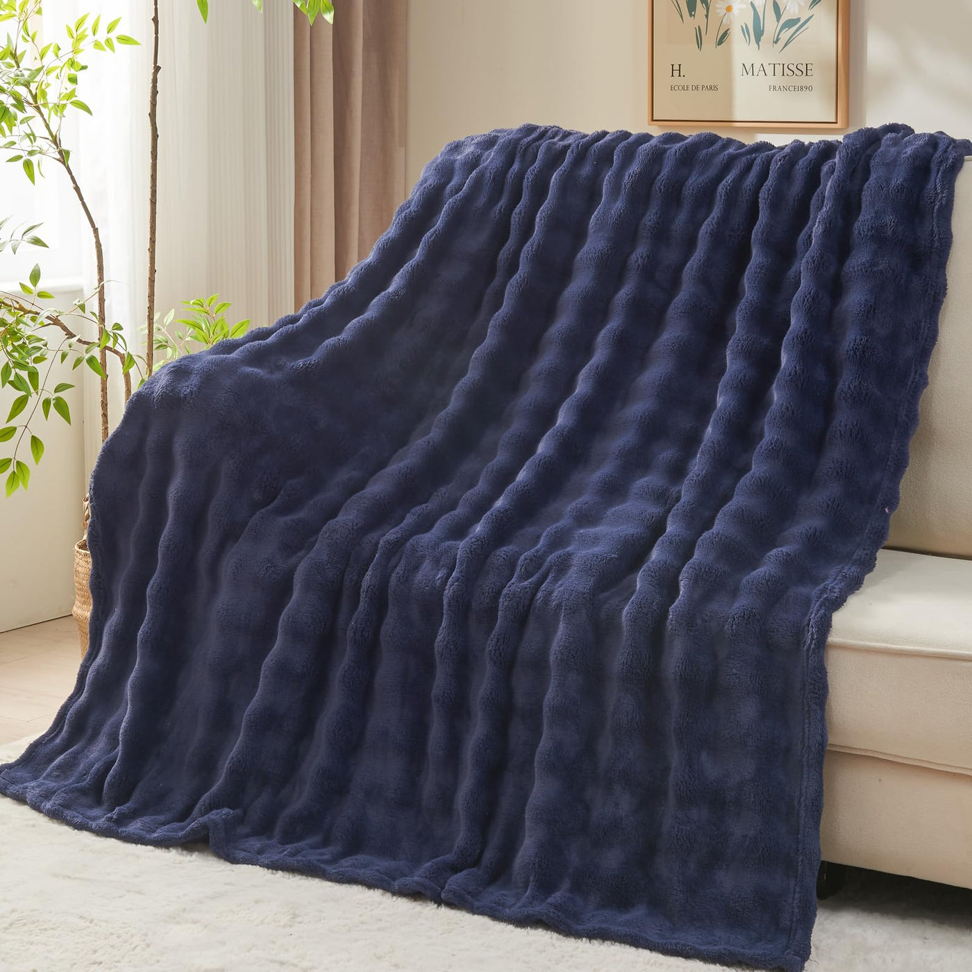Newcosplay Twin Blanket For Couch Dark Navy Super Soft Flannel Fleece 3D Bubble Lightweight Bed Blanket All Season Use (Dark Nav