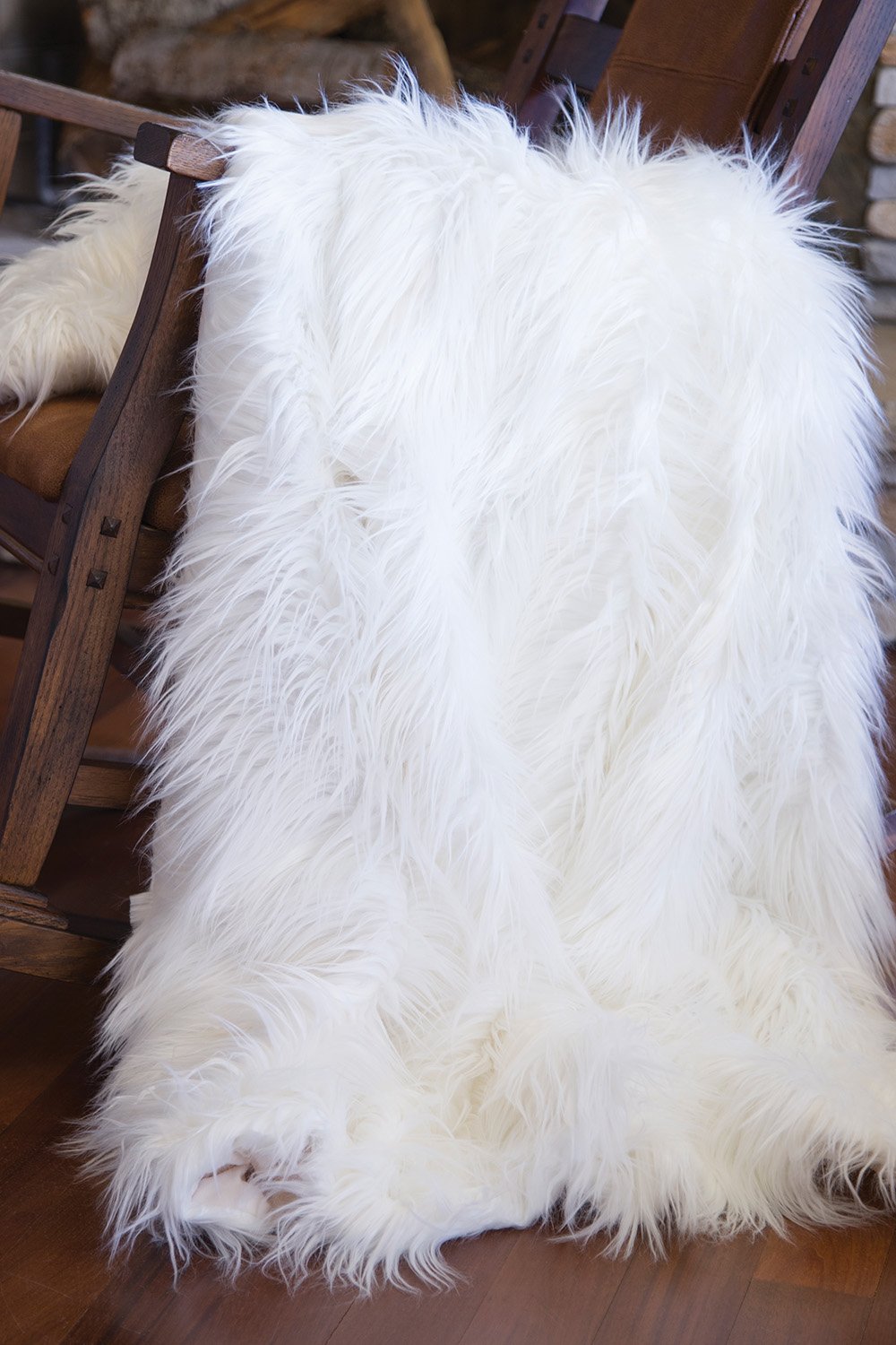 North End Decor Faux Fur Throw Blanket, Mongolian Long Hair White