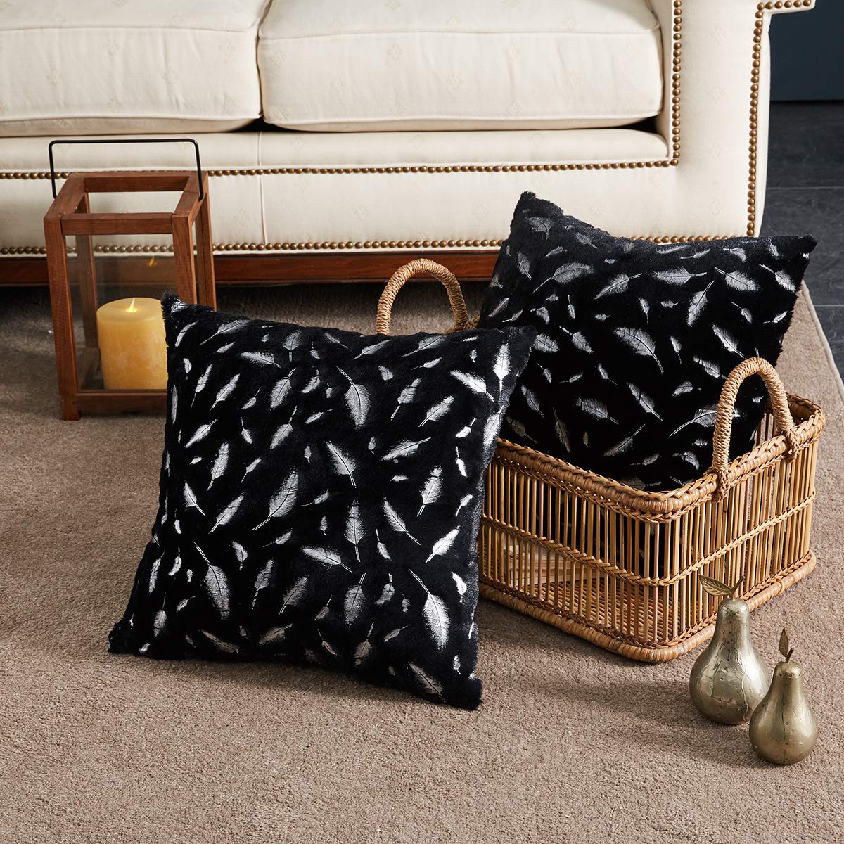 Ommato Throw Pillows Covers 18 X 18,Set Of 2 White Fur With Gold Leaves Soft Throw Pillows For Couch Bed,Accent Home Decorative