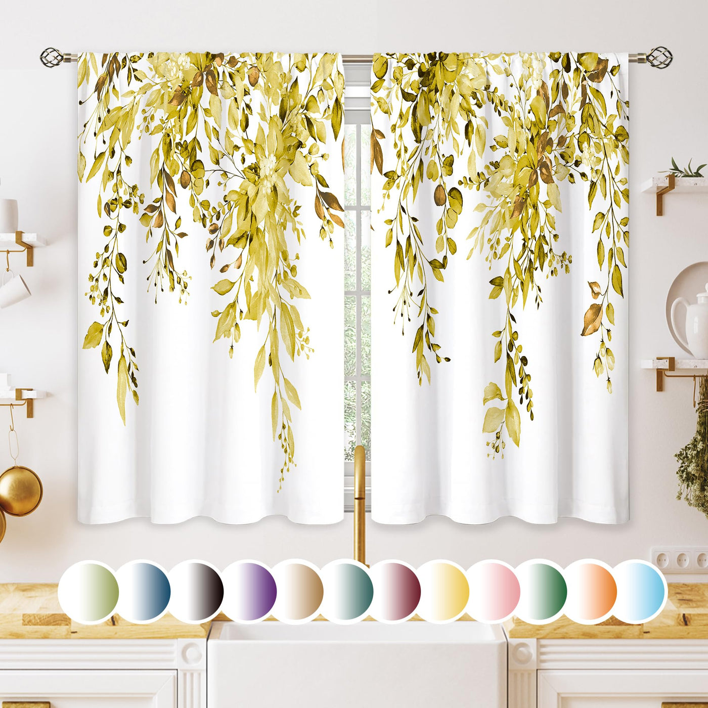 ?Eucalyptus Leaf Curtains For Kitchen Windows Short Curtains For Small Window. Made With Quality Craftsmanship, Window Drapes Is Not Easily Deformed, Fadeless, No Pilling. Drapes Maintain The Perfect Amount Of Privacy, Short Kitchen Curtains Gently Filter The Sunlight. Floral Curtains For Kitchen Can Be Paired With Farmhouse, Rustic, Modern Or Vintage Style Home Decor. ?Multi-Purpose: Curtain Home Decor Items Are Suitable For Your Kitchen, Living Room, Dining Room, Bathroom, Bedroom, Kids And Dorms With High Performance In Room Dimming, Thermal Insulation, Efficiency And Privacy Protection. ?Size Specifications: Each Package Includes 2 Panels Kitchen Curtains, Each Panel Measuring 27.5'W X 39'L. Easy To Install And Slide. Rod Pocket Construct Fits Most Rods In The Market. ?Warm Tips1. Farmhouse Flower Curtains Kitchen Are Easy To Clean And Can Be Hand Or Machine Washed Without Worrying About Fading Or Needing Ironing. Material Is Wrinkle Resistant, Please Iron At Low Temperature If Needed.2. Recommended To Use A Rod With A Diameter Of 1.5 Inch Or Less.
