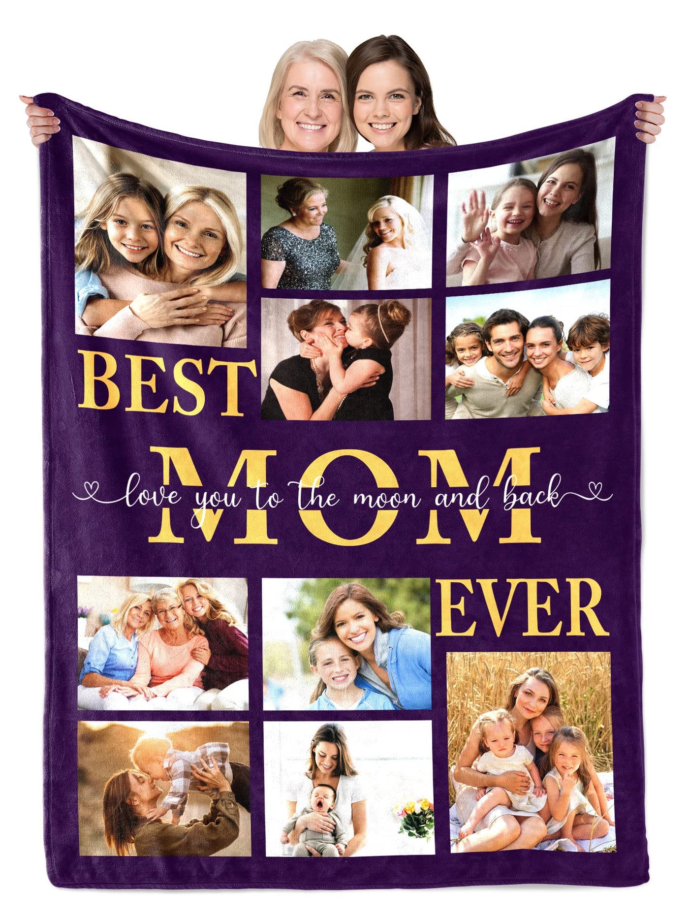 Prints Fun Personalized Mothers Day Birthday Gifts, Custom Picture Blanket For Best Mom Ever For Women From Daughter Son, Photo