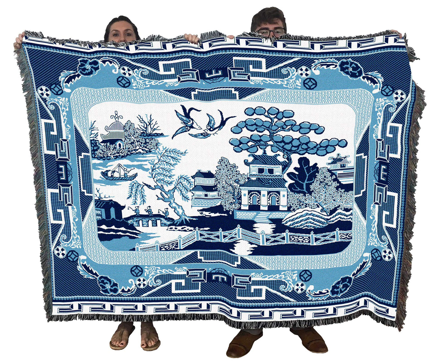 Pure Country Weavers Blue Willow Blanket - Asian Gift Tapestry Throw Woven From Cotton - Made In The Usa (72X54)