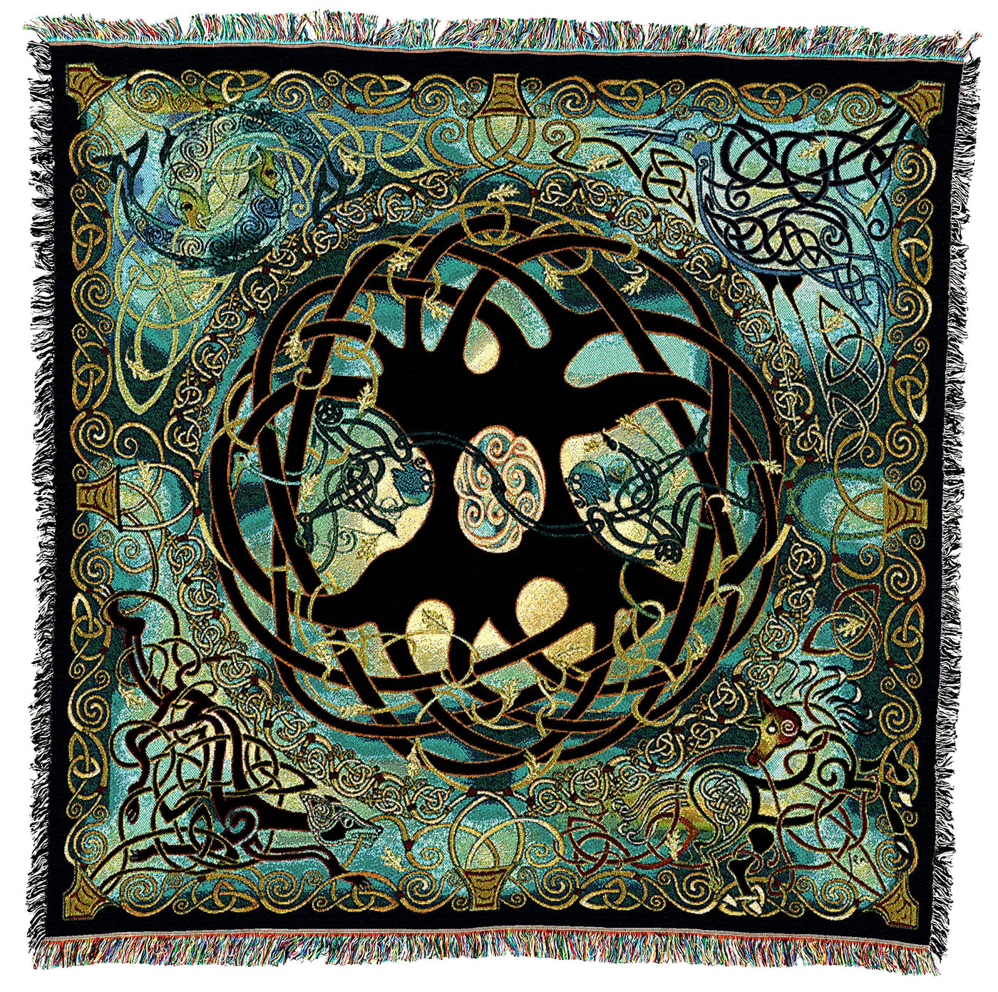 Pure Country Weavers Celtic Tree Of Life Blanket By Jen Delyth - Gift Lap Square Tapestry Throw Woven From Cotton - Made In The