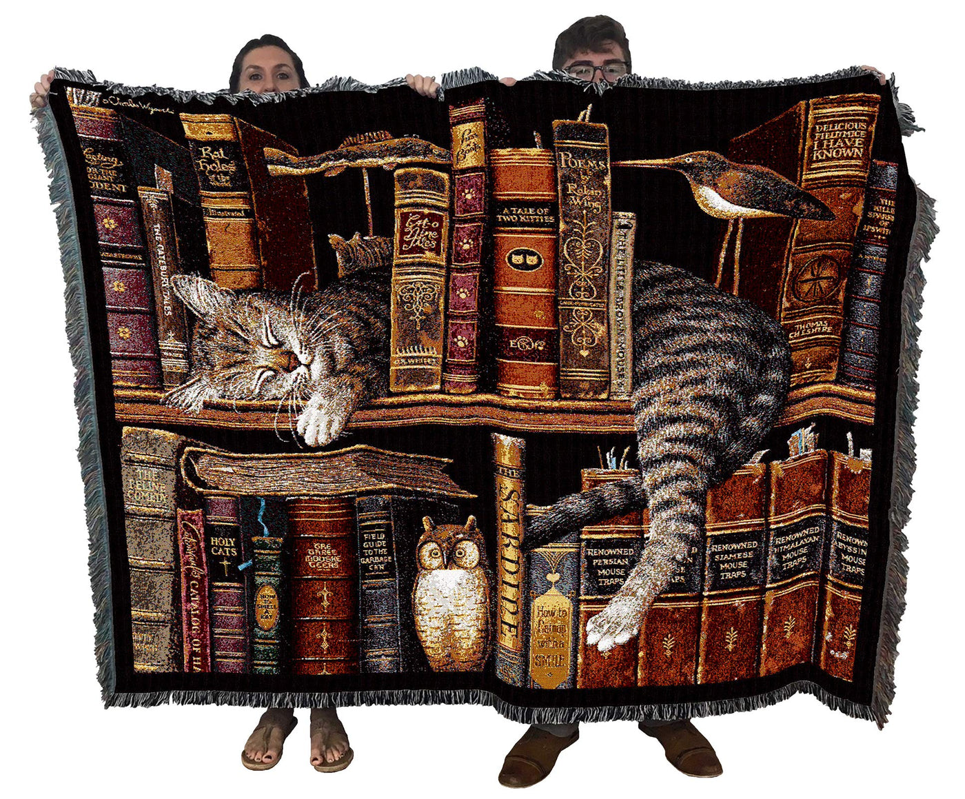 Pure Country Weavers Frederick The Literate Cat Blanket By Charles Wysocki - Gift For Cat Lovers - Tapestry Throw Woven From Cot