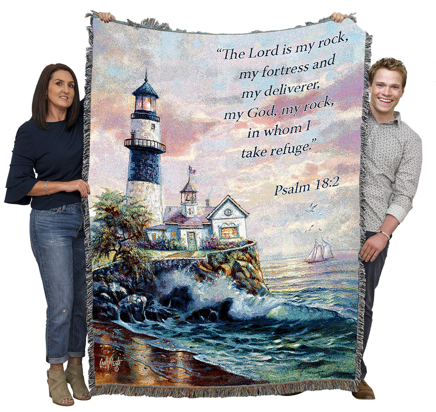 Pure Country Weavers Lighthouse Blanket By Carl Valente - The Lord Is My Rock And My Fortress - Scriptures -Psalm 18:2 - Religio