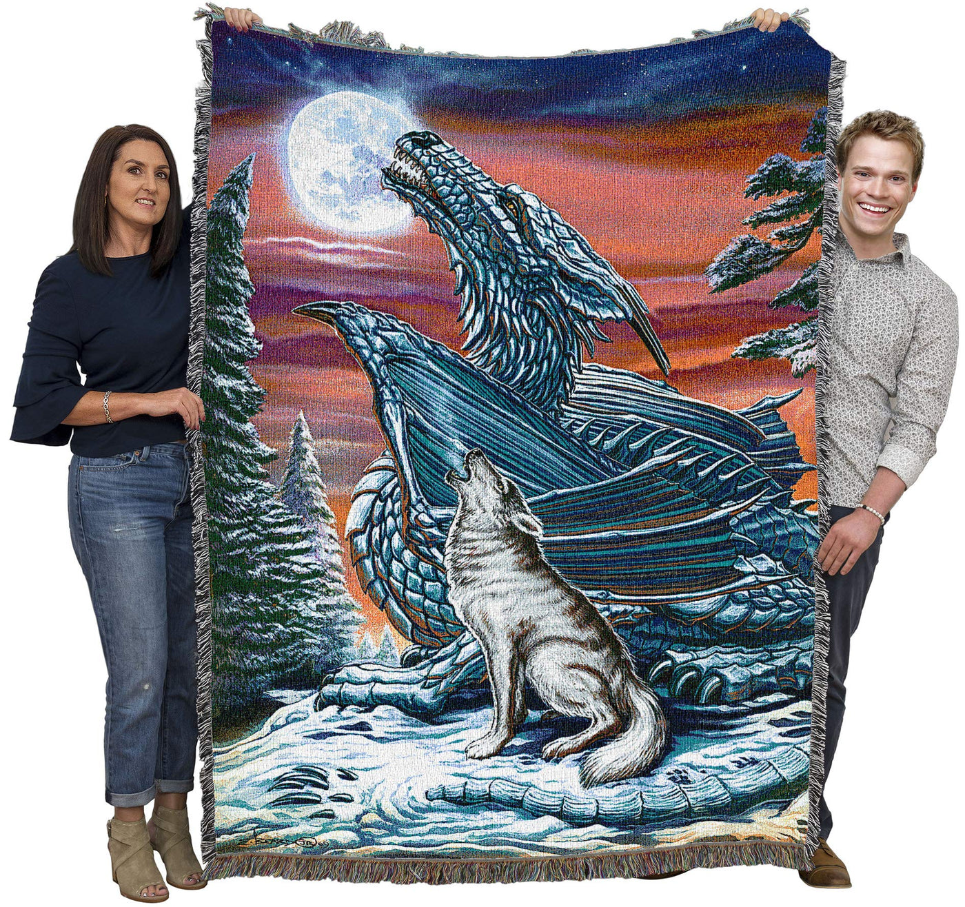 Pure Country Weavers Moonsong Wolf And Dragon Blanket By Ed Beard Jr - Gift Fantasy Tapestry Throw Woven From Cotton - Made In T