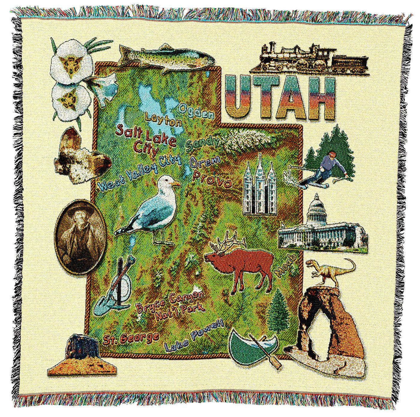 Pure Country Weavers State Of Utah Lap Square Blanket - Gift Tapestry Blanket Throw Woven From Cotton - Made In The Usa (54X54)
