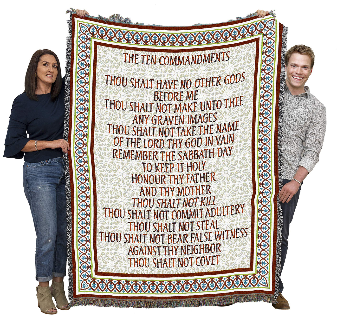 Pure Country Weavers Ten Commandments Blanket - Scriptures - Exodus 20:2-17 - Deuteronomy 5:6-21 - Religious Gift Tapestry Throw