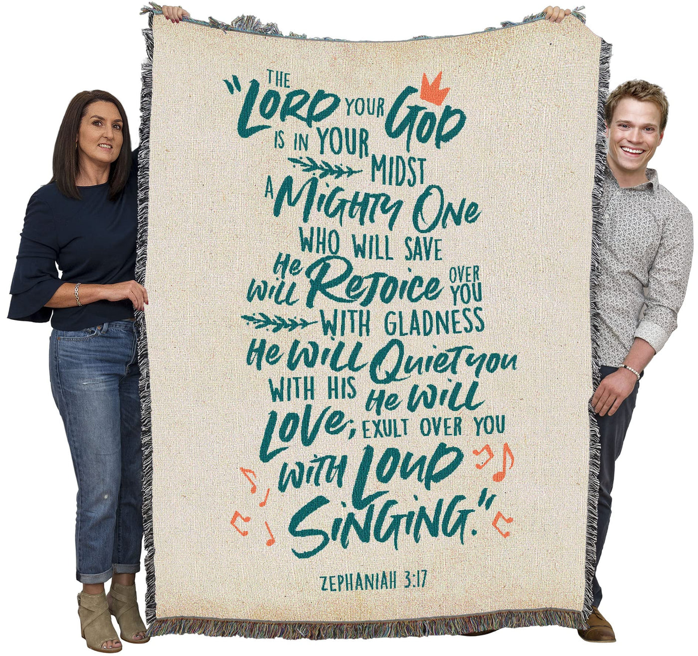Pure Country Weavers The Lord Will Rejoice Over You Blanket - Scriptures - Zephaniah 3:17 - Religious Gift Tapestry Throw Woven