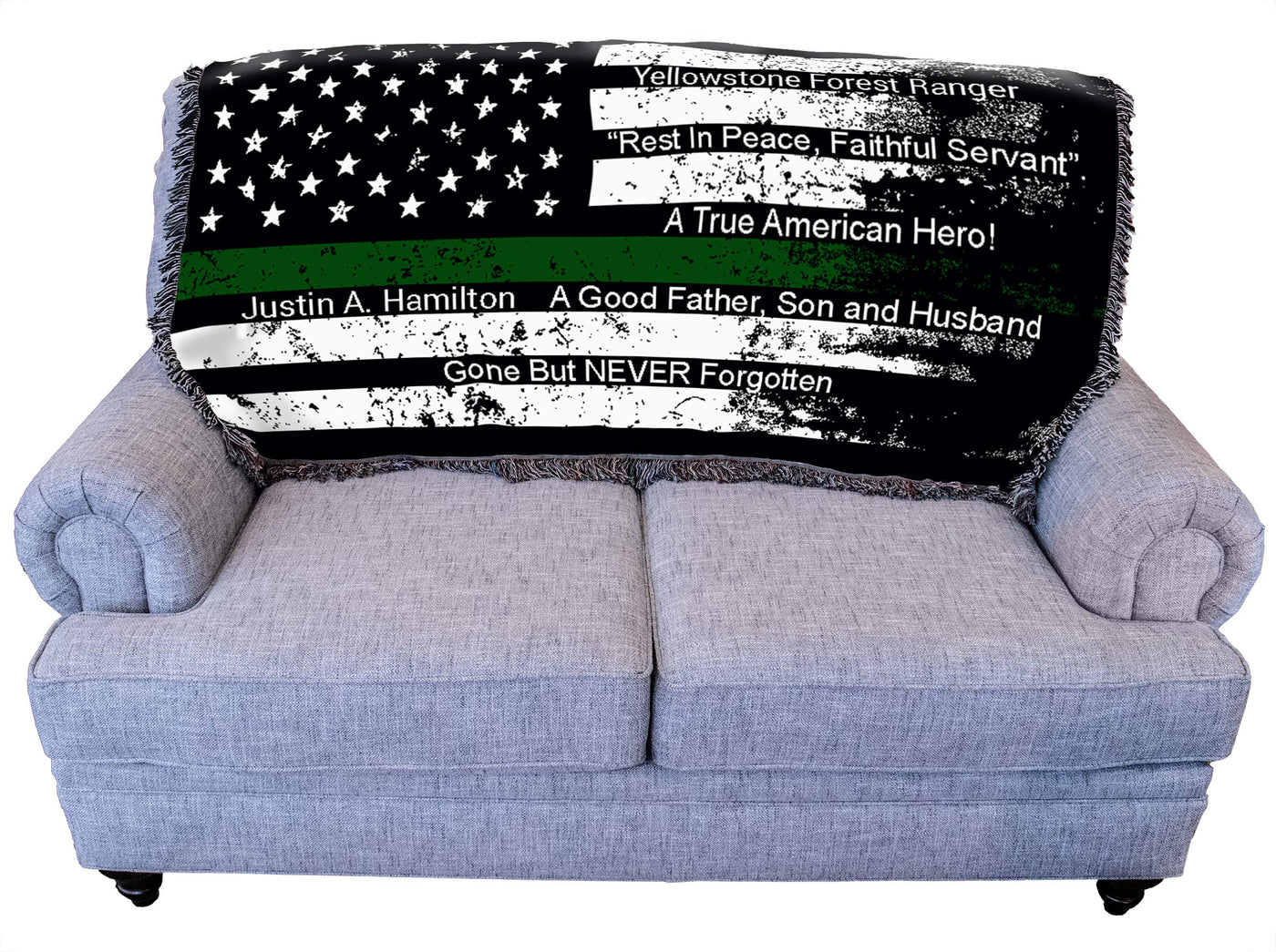 Pure Country Weavers Us Military - Green Line American Flag Blanket - Personalized - Gift Military Tapestry Throw For Back Of Co