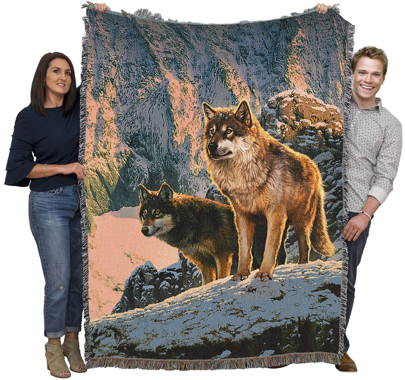 Pure Country Weavers Wolf Couple In Sunset Blanket By Vincent Hie - Gift Tapestry Throw Woven From Cotton - Made In The Usa (72X