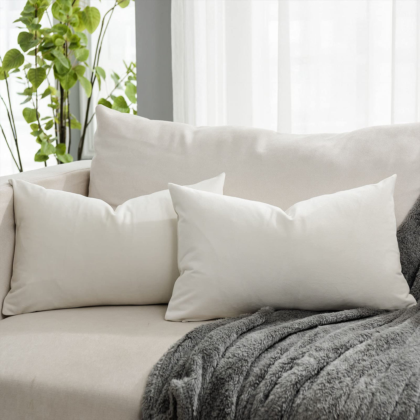 Quafoo Cream White Soft Lumbar Velvet Throw Pillow Covers 16X24 Inch Set Of 2 For Sofa Couch Bed Living Room Decorative Luxury S