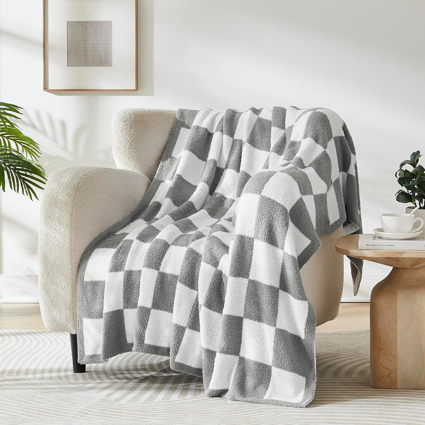 R.Share Grey And White Checkered Throw Blanket 50X70 Inch Reversible, Microfiber Soft Comfy Cozy Lightweight Fluffy Fuzzy Warm Cute Checkerboard Plaid For Couch Sofa Chair Bed Home