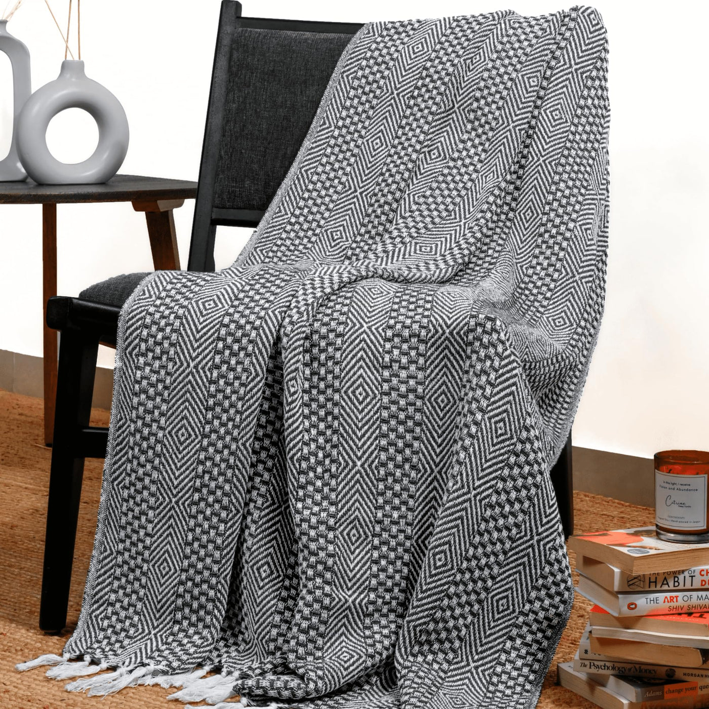Rajrang Grey Woven Country Rustic Throw Blanket 100% Cotton Luxury Quality Sofa Couch Bed Throws Perfect For Indoor Outdoor 50X6