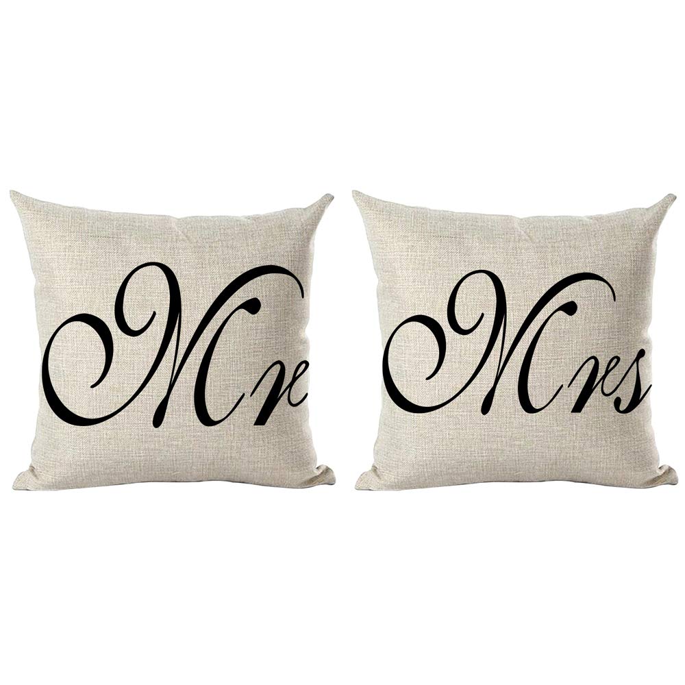 Ramirar Set Of 2 Black Word Mr Mrs Simple Style Gift For Family Lover Valentine'S Day Decorative Throw Pillow Cover Case Home Li