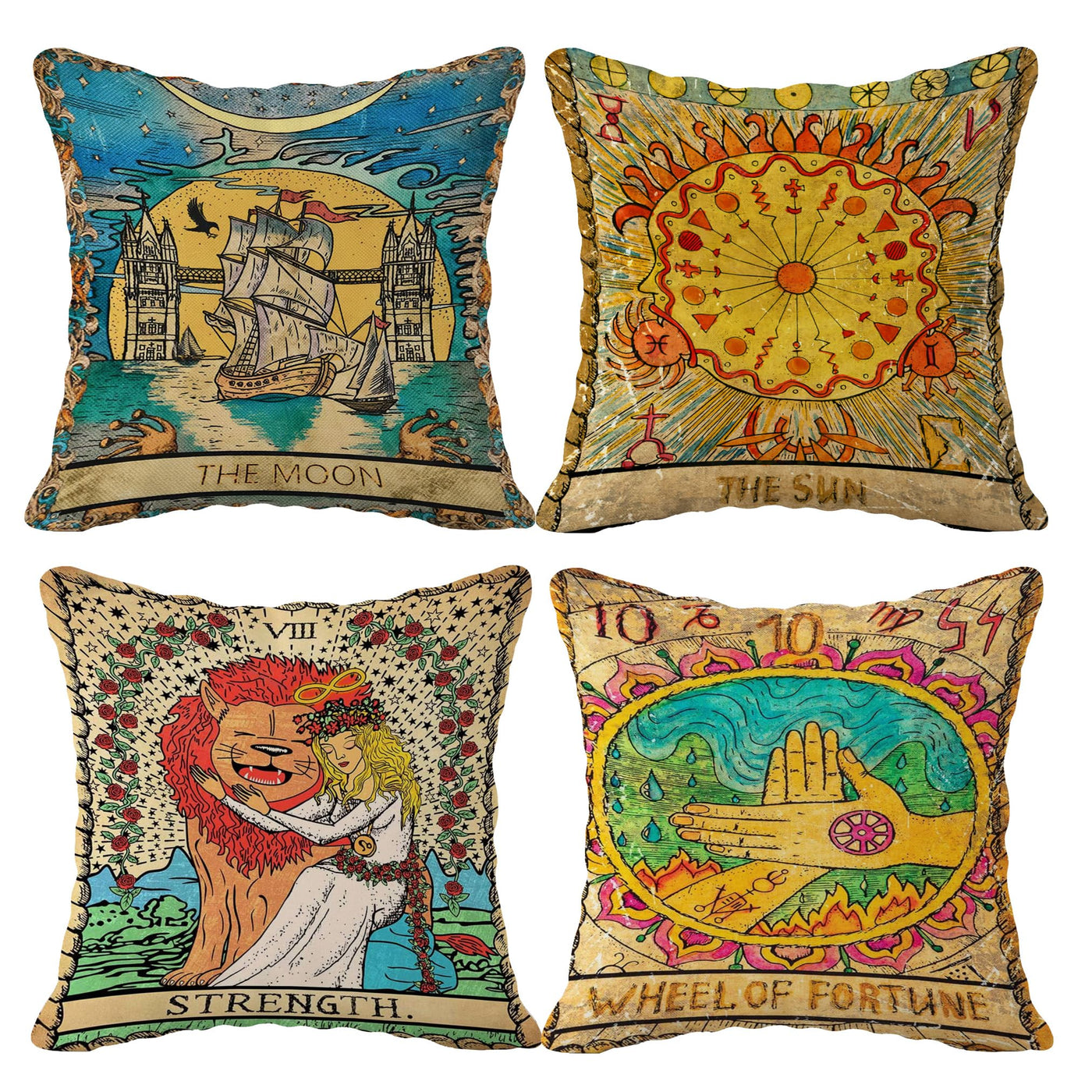 (Rb) Tarot The Moon Sun Flannel Throw Pillow Case, 18 X 18 Inch Set Of 4, Daughter Sister Astrology Tarot Lovers Gifts, Mom, Gif