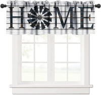 Retro Windmill Valance Curtain, Rustic Farmhouse Wood Grain Country Style Print Rod Pocket Blackout Window Valance For Kitchen C