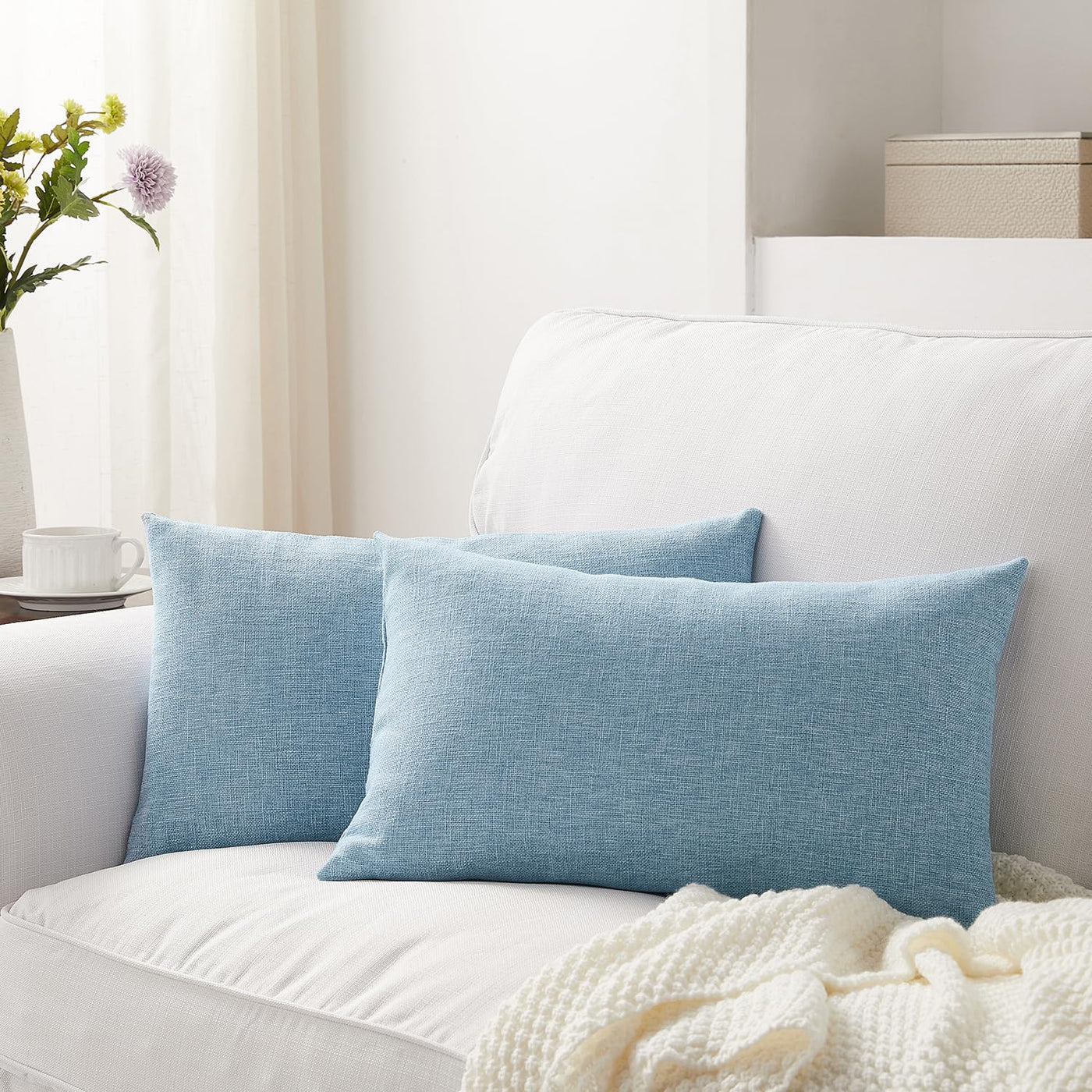 Set Of 2 Light Blue Pillow Covers 12 X 20 Inch Farmhouse Boho Decorative Throw Pillow Covers Linen Cushion Covers For Sofa Couch