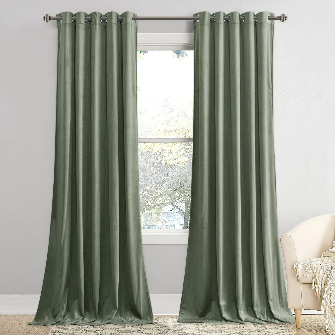 Stangh Luxury Sage Green Velvet Curtains Holiday Decorative Drapes For Christmas Party, 84 Inches Green Curtains Room Darkening