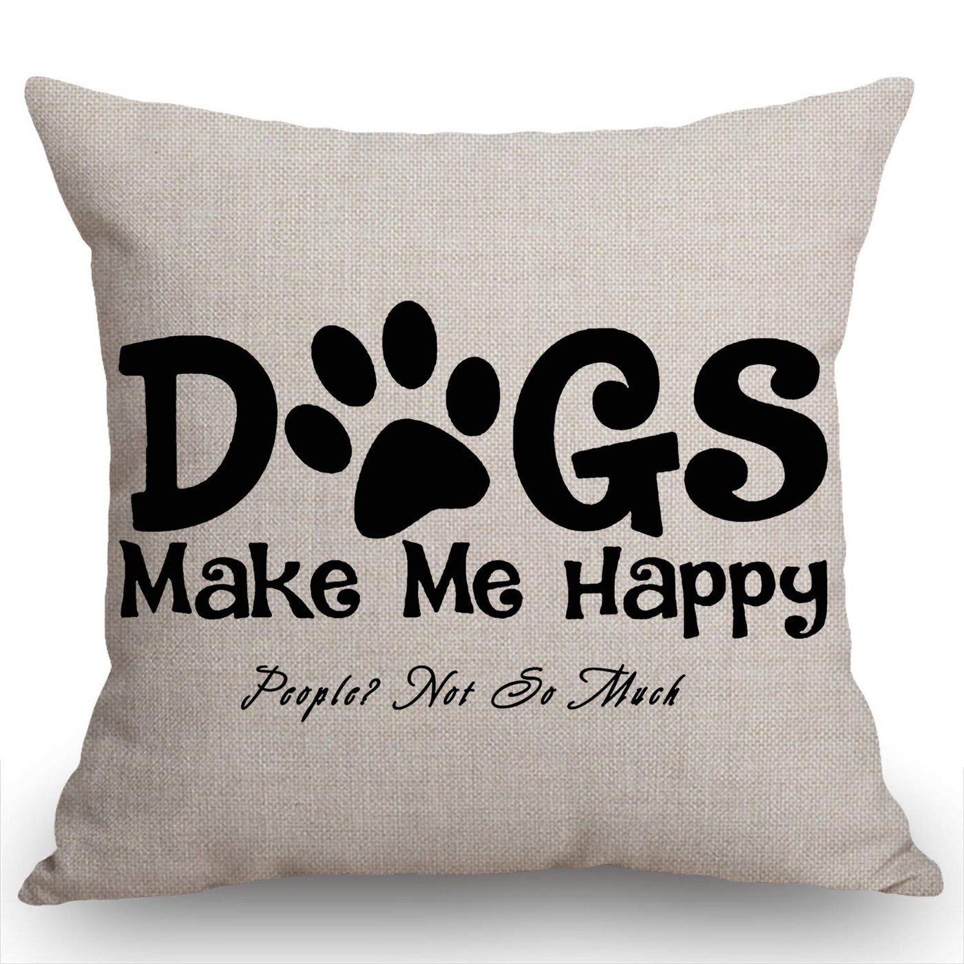 Swono Dogs Make Me Happy People Not So Much Funny Letter Black Throw Pillow Case Funny Quotes Cushion Cover Cotton Linen 18 X 18